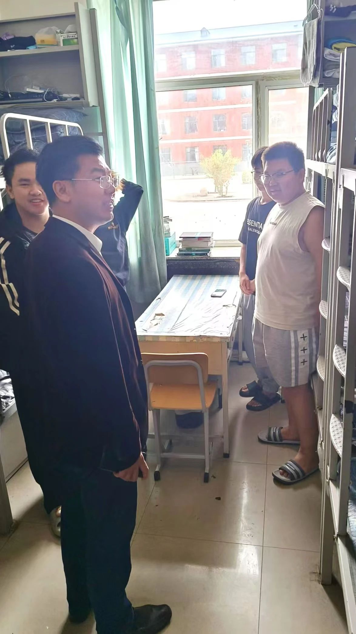 在宿舍走访过程中,党总支书记燕明辉与员工亲切交谈,关心员工的校园生活体验,叮嘱大家要注意个人安全和财产安全,鼓励大家积极融入新学期的学习中,树立学习目标,做好学习规划,为实现人生价值而努力学习。同时,于海洋老师细致的询问新生们关于生活饮食、生活习惯、学习规划及未来发展计划的情况,认真倾听每位同学的声音,无论是学习上的困惑还是生活中的烦恼,他都给予耐心的解答和关怀。此外党总支书记燕明辉和24级辅导员于海洋老师还对员工宿舍进行细致的安全卫生检查,确保员工拥有安全、整洁的宿舍环境,同时提醒同学们注意消防安全,不断提升自身的安全意识。