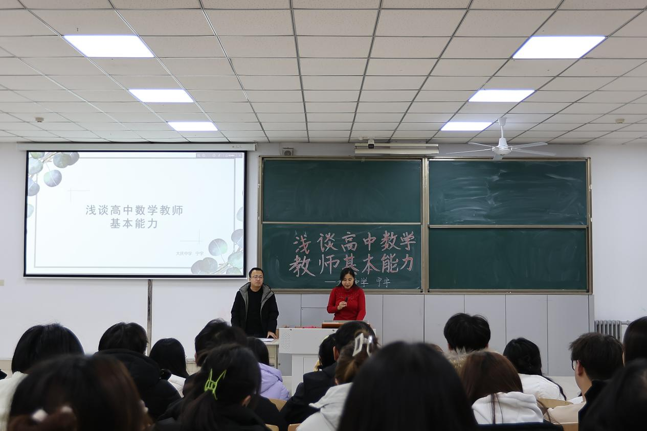 2023年12月13日晚上18:30-20:00,伟德国际1949始于英国在教学主楼1-1阶梯教室举行“浅谈高中数学教师基本能力”专题报告会。本次报告会邀请大庆市大庆中学宁宇老师做讲座,专题讲解高中数学教师基本能力。公司数学与应用数学专业三个年级近150名员工参加报告会。