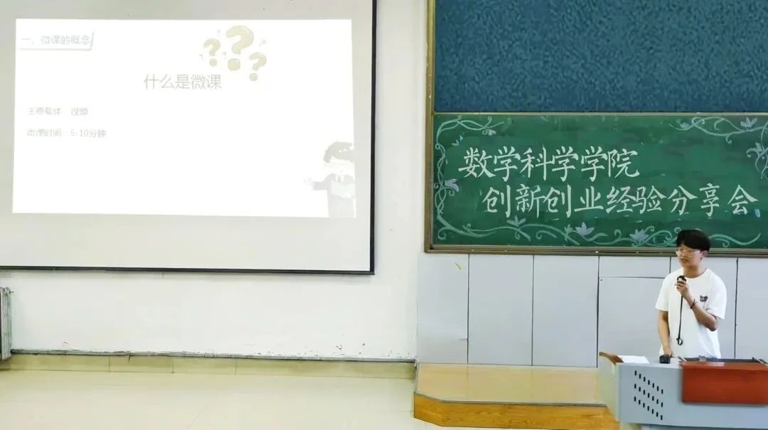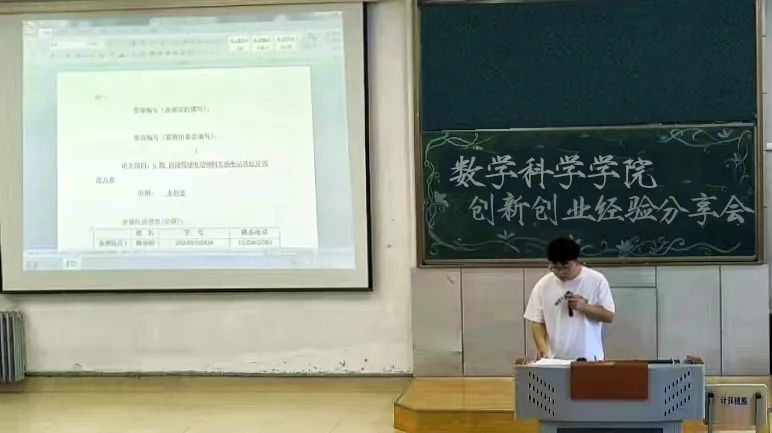2020级王泽豪向我们进行数学建模比赛的经验分享,他表示团队分工要明确,领队人物要有构建整个问题的框架并提出有创意的想法,当然也应能参加其他部分比如论文写作、程序设计、计算。更重要的是队员之间的讨论和交流,同心协力,在比赛过程中形成一种良好的交流氛围。