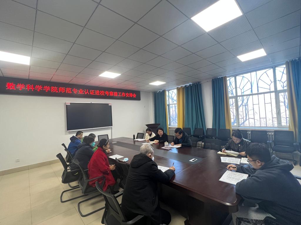 3月21日上午八点半,公司在公司楼会议室召开师范专业认证进校考察前工作安排会。公司领导班子成员、自评报告编写组成员、实训室负责人、教研室主任参加会议。会议总结了公司数学与应用数学专业师范专业认证近阶段工作进展情况,并针对师范专业认证进校考察前实习材料梳理、专业课听课准备、实训室准备等具体工作进行了安排部署。