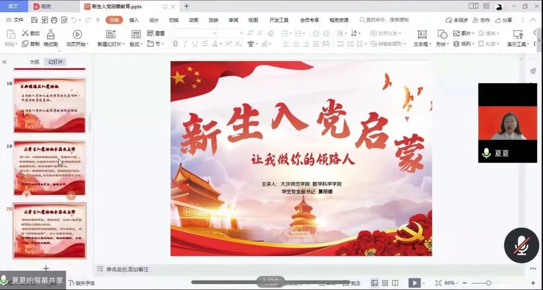 之后,夏老师为新生细心讲解了发展中共党员的工作流程,详细说明了入党的基木条件与入党程序。