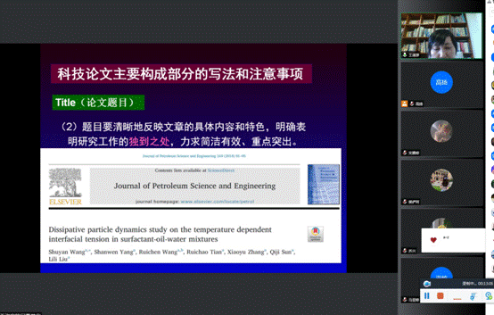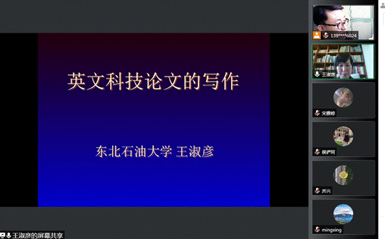 12月7日14时,公司在腾讯会议线上举行论文写作专题报告会。本次报告会邀请东北石油大学王淑彦教授,作题为“英文科技论文的写作”专题报告。报告会由副经理高扬主持,公司全体教师、毕业班员工和部分联合培养的研究生参加会议。