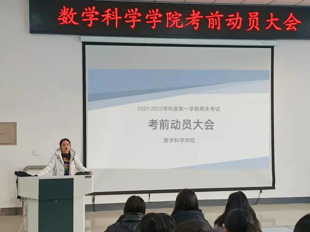 会上,张鹭老师分别从学习方面、日常方面阐述期末考试对同学们的重要性,动员大家积极备考、诚信应考,希望同学们科学合理安排好复习计划,正确看待考试,克服考前紧张焦虑的情绪,以从容自信的态度、平常平和的心态面对期末考试,在考试过程中严守考纪,诚信考试。