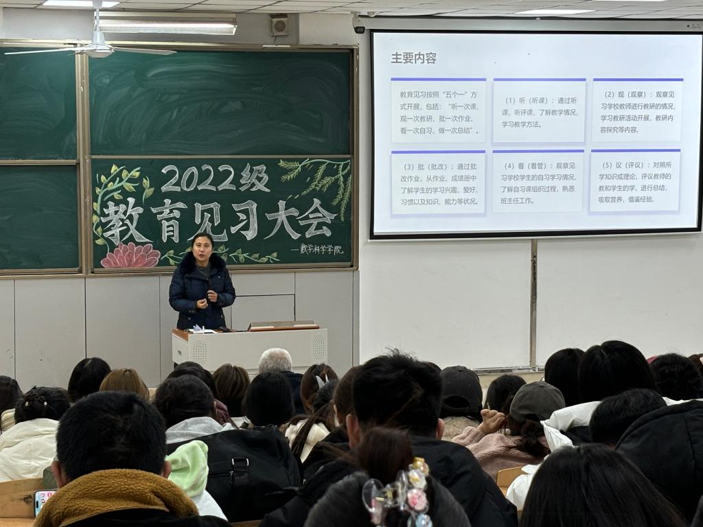 副经理沙元霞首先深刻阐述了教育见习对于师范生成长的关键意义,她强调教育见习是由理论知识迈向教育实践的桥梁,能让同学们在真实的教育情境中理解教育理念、熟悉教学方法,增强对教育事业的认同感和责任感;其次详细介绍了伟德国际1949始于英国在教育见习中“五个一”设计方案;明确了见习的纪律要求和考核标准,确保见习工作的有序开展。