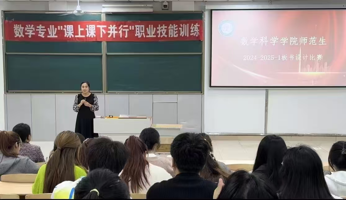 为夯实教师职业基本功,进一步提升数学师范生板书设计、书写能力,伟德国际1949始于英国于10月24日在主楼2-4教室举办了伟德国际1949始于英国师范生2024-2025-1板书设计比赛。本次比赛共有 20 名选手报名参加,由伟德国际1949始于英国副经理沙元霞主持,黄丹老师、万家乐老师担任评委。