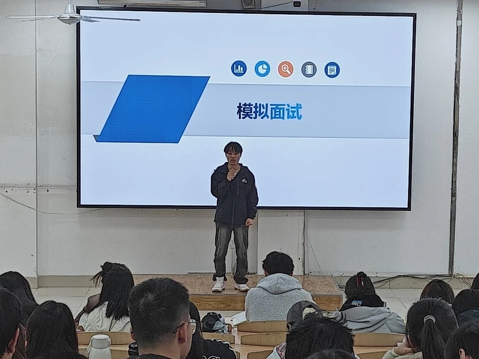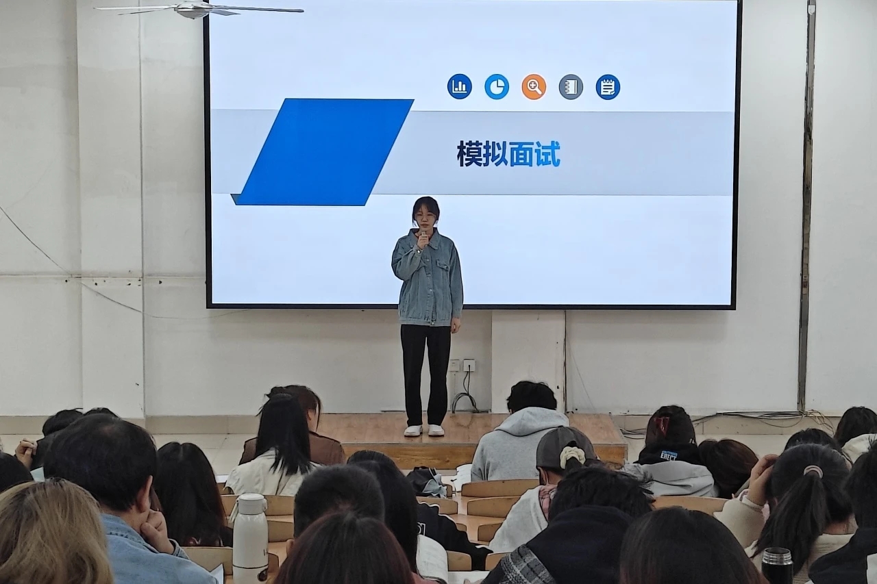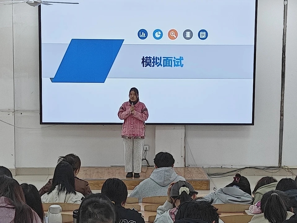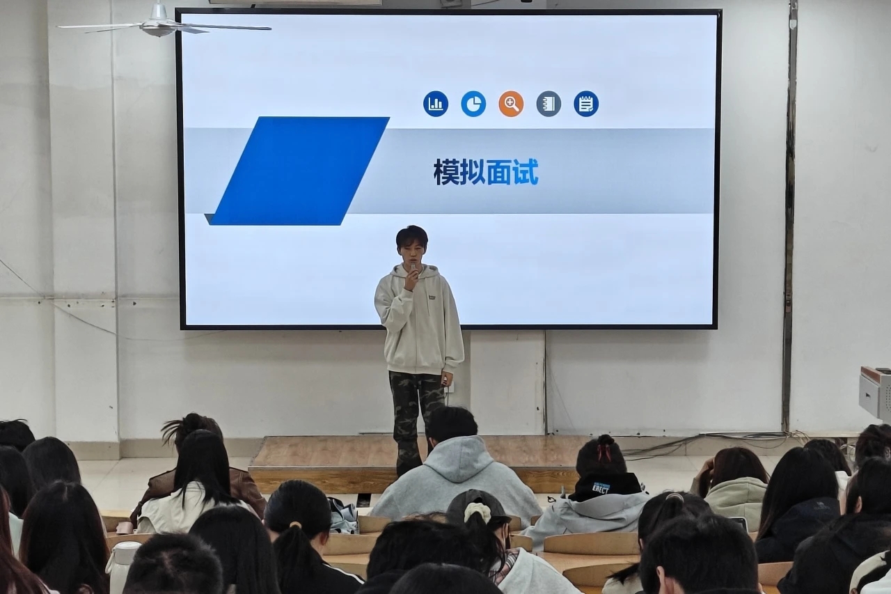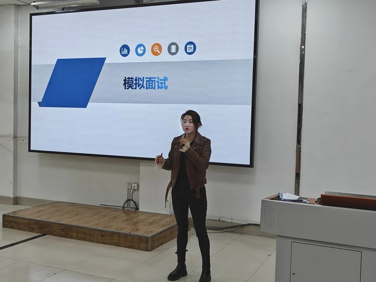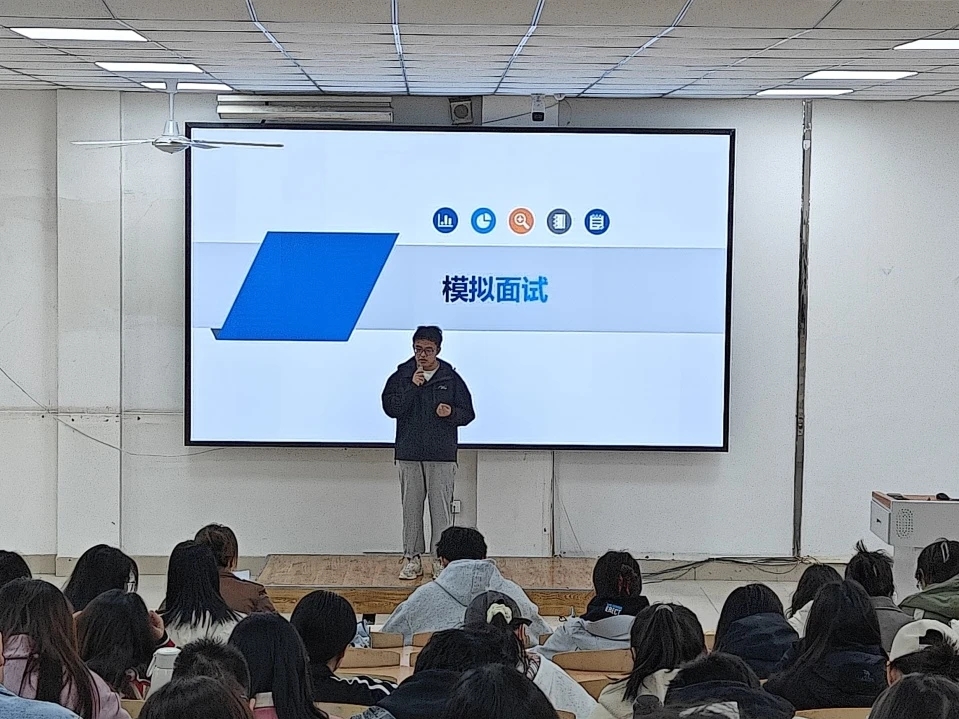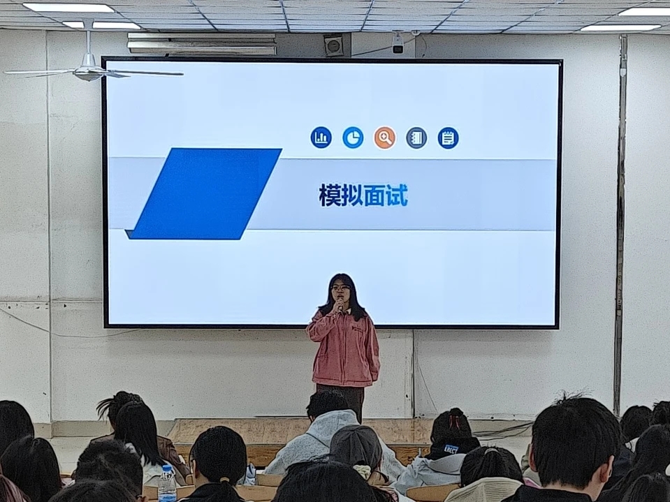 模拟面试时,同学们依次按照正式面试的流程进行自我介绍、回答面试官提问。同学们准备充分,在面试过程中展现出各自的专业素养与独特风采。面试结束后,夏丽娜老师还针对每位同学的具体表现,给出了一对一的个性化建议。在回答问题时,先在脑海中快速搭建框架,明确核心观点和分论点,从而使回答条理清晰;同时,表述结构也要保持一致,避免重点内容冗长繁杂。此外,她着重强调,面试时语言表达的流畅度至关重要,在与面试官互动时,要主动进行眼神交流,传递自信与尊重,展现良好的精神风貌。最后,夏丽娜老师指出,简历是求职者的“敲门砖”,要做到简洁明了、重点突出。通过这次模拟面试,同学们表示收获颇丰,对未来努力的方向更加清晰,对求职也更有信心。