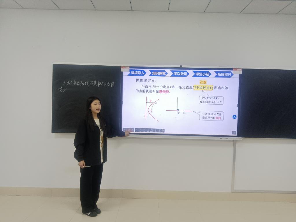 为深化师范生培养改革,提升数学与应用数学专业员工的教学实战能力,4月10日-4月16日期间公司邀请大庆市景园中学王孝阳、大庆市三十六中梁丹两位老师走进大公司园,通过“理论指导+实战打磨”双轨模式,为2022级数学师范生开展讲课能力指导。通过引入中学一线教学资源,让师范生在校期间即接触真实教学场景,帮助员工掌握新课标背景下的教学设计、课堂互动及学情分析技巧。首批指导的6名师范生分组进行微型课试讲,中学名师逐一“把脉问诊”。针对员工李欣怡在《勾股定理》试讲中“课堂活动不充分”,郎美平在《二次函数的图像》试讲中“引入不自然“等问题给出具体指导,并建议:“要根据初中生的认知特点,用阶梯式问题引导探究,避免直接灌输结论。”