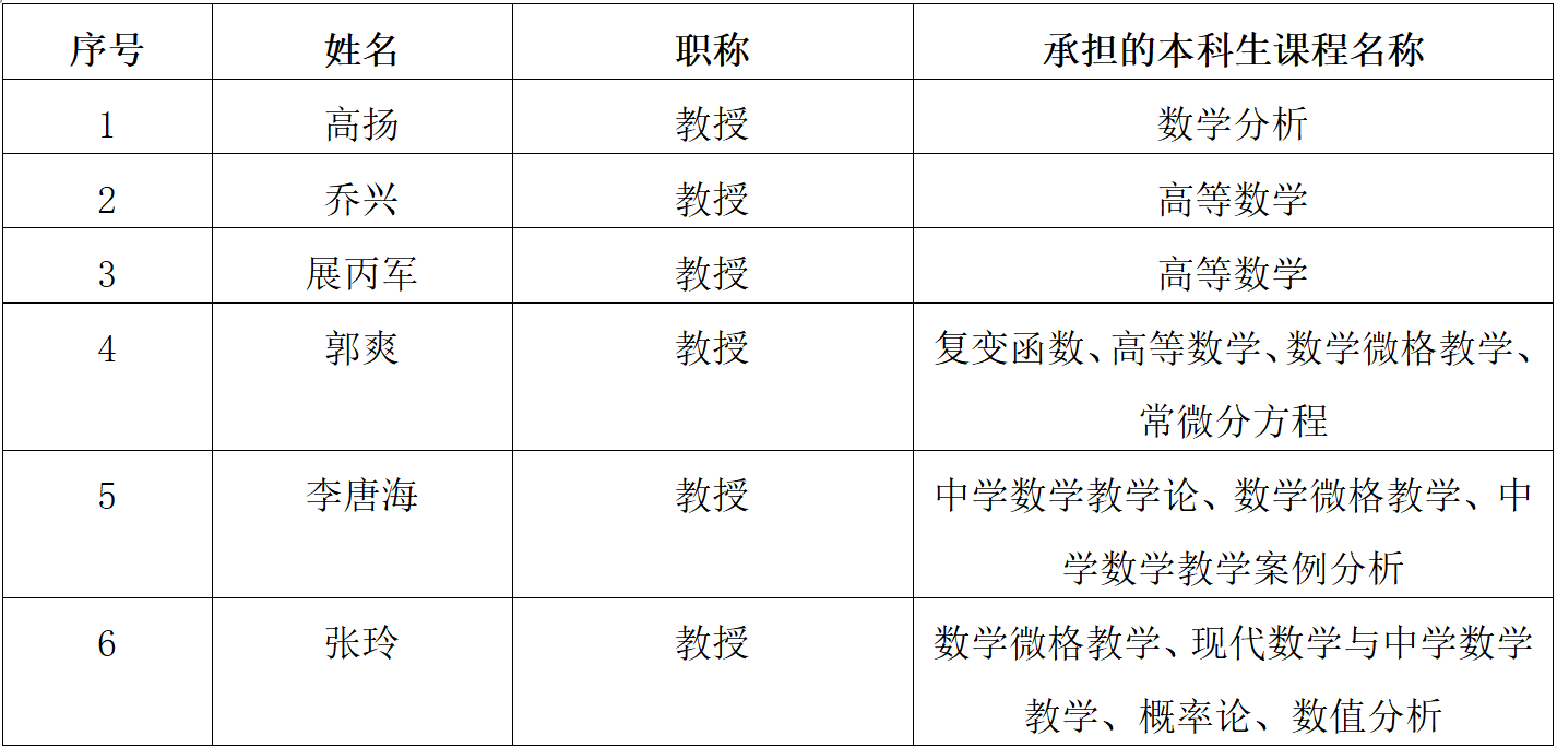 数学与应用数学专业现有专任教师34人(公司内部28人),其中教授6人,副教授12人,讲师15人。专任教师中有博士5人,省教学名师1人,校教学名师1人,兼职硕士生导师3人。专任教师的高级职称占比达到52.94%,博士占比达到14.7%。