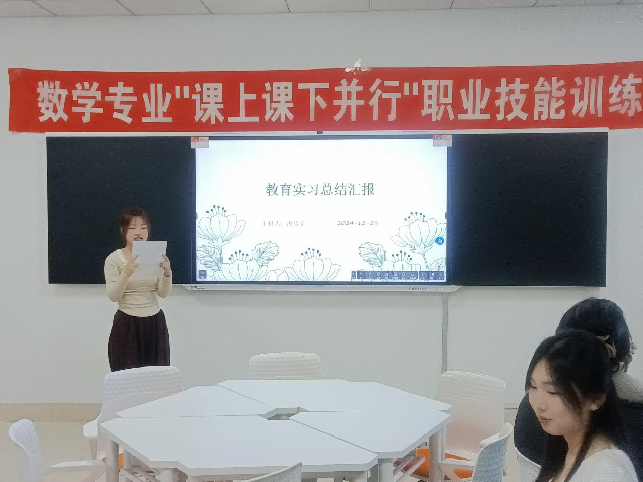 在2024年12月23日-2024年12月25日期间,数学与应用数学专业157名实习生共分为14个组别,分别举行了教育实习总结会。