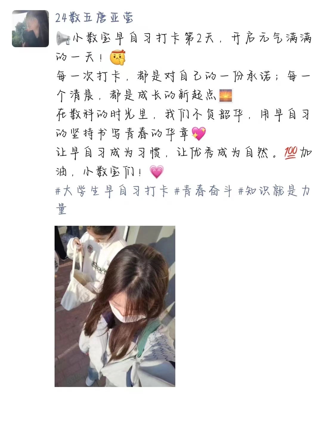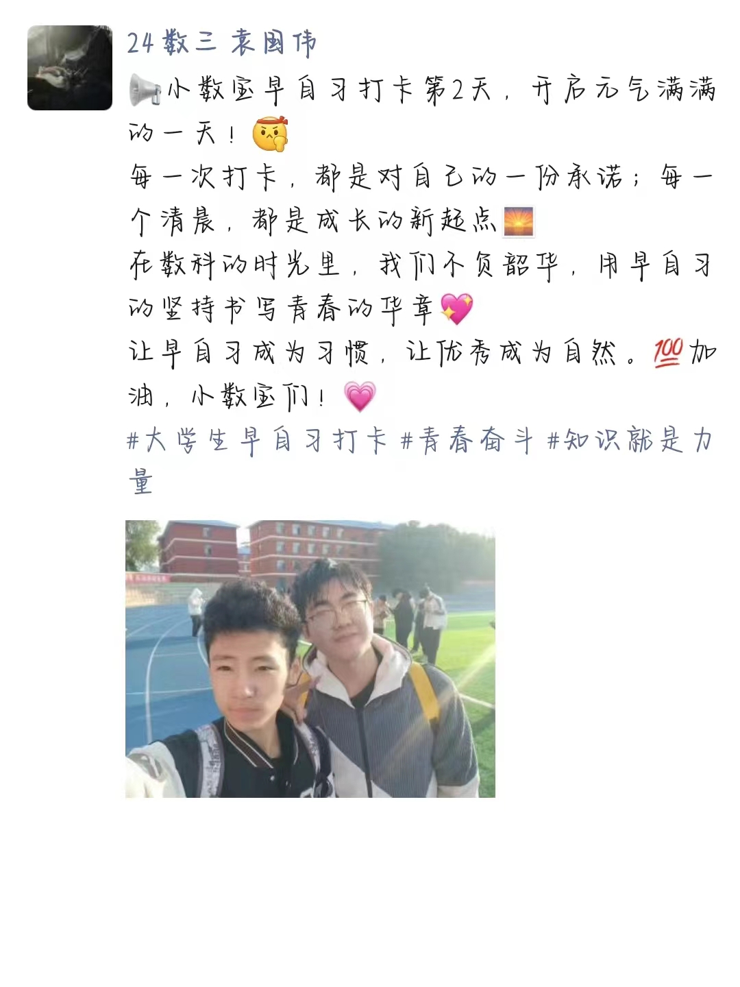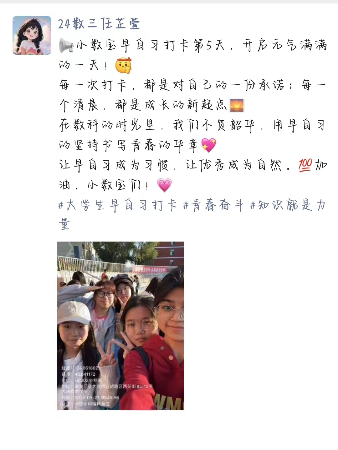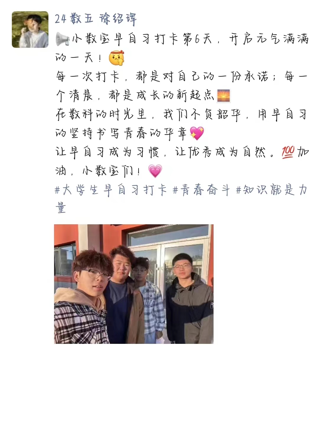通过这一周的打卡活动,同学们不仅养成良好的生活习惯和学习习惯,还增强自律意识和团队合作精神,大家相互鼓励、相互监督,共同进步。