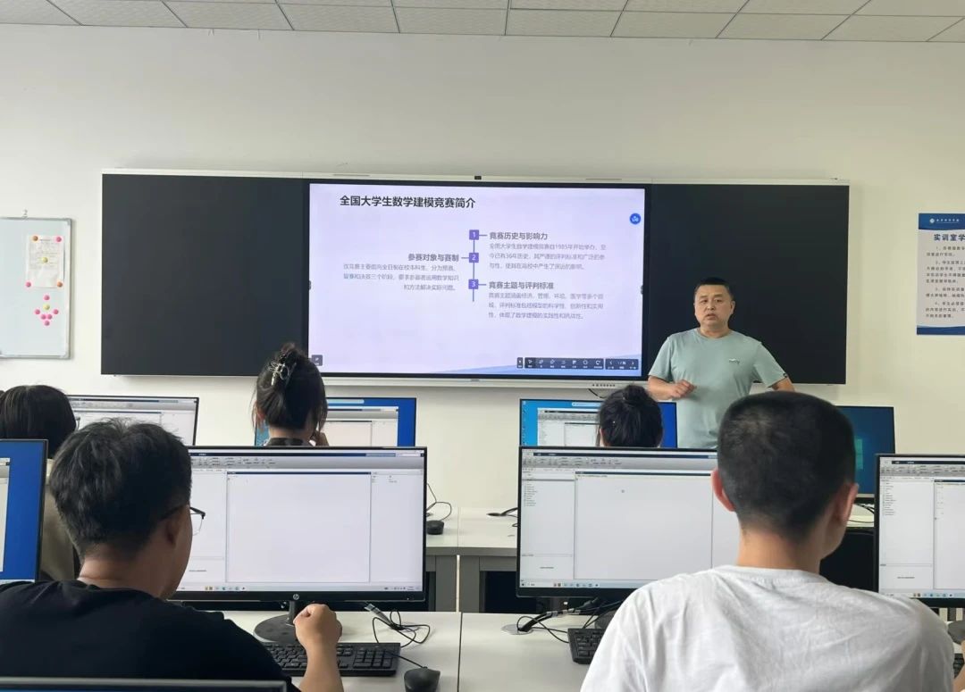 活动中,具有丰富教学经验和深厚学术功底的金天坤老师受邀而来,金老师担任主讲,由浅入深地讲解数学建模概念解析的要求和方法,并结合实际案例进行具体分析,强调要重视通过不同的数学模型挖掘思政元素,树立同学们正确的人生观和价值观。接着通过竞赛真题解析、互动讨论等多种形式,为参训同学提供全方位、多角度的指导。此外,金老师还分享自己在往年指导竞赛中的宝贵经验,帮助员工在短时间内实现数学素养和建模能力的飞跃。