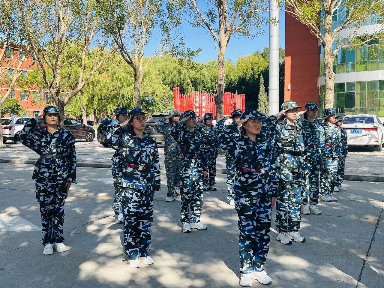 无一不为军训添加一抹亮丽的色彩