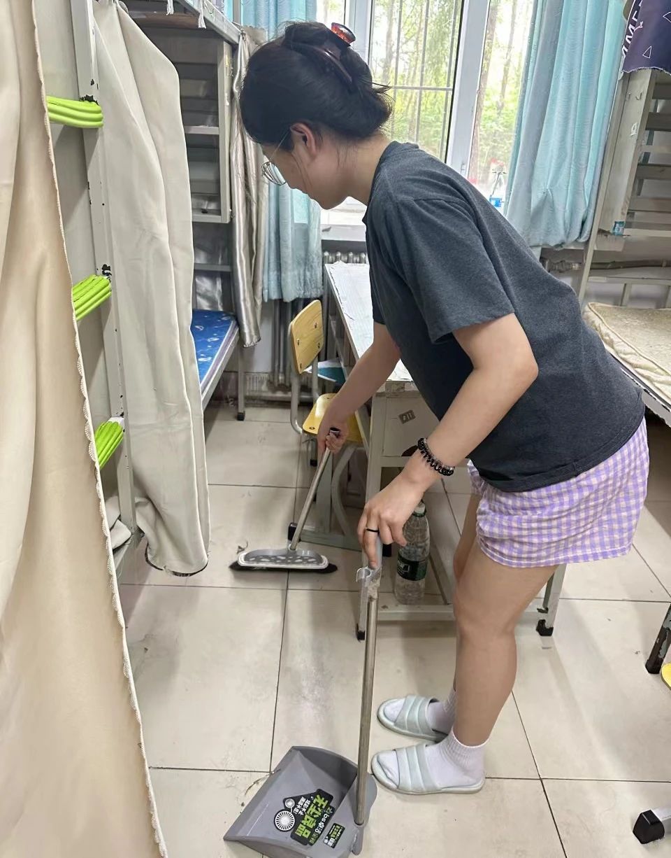 活动中,学弟学妹们与即将毕业的学长学姐们一起对寝室进行了“地毯式清扫”,认真仔细地对每个位置及公共区域进行了打扫,不留死角,不留盲区,确保生活环境卫生安全。大家分工合作,配合默契,很快将床铺收拾整齐,将房间打扫干净。用汗水和劳动为学弟学妹们留下整洁温馨的寝室,将良好的精神风貌和文明薪火传递给学弟学妹们。展现出数科学子致敬劳动,热爱劳动,享受劳动的精神。