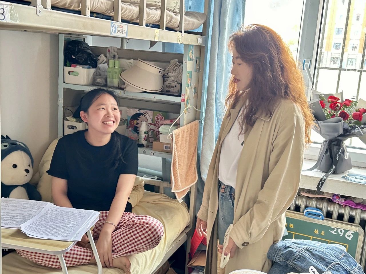 面对24届毕业生宿舍,夏老师亲切关怀大家的近况,仔细地询问毕业生们的升学、就业等情况,了解2024届毕业生就业动态,对于员工的职业规划以及未来发展表示出深情牵挂和美好祝愿。