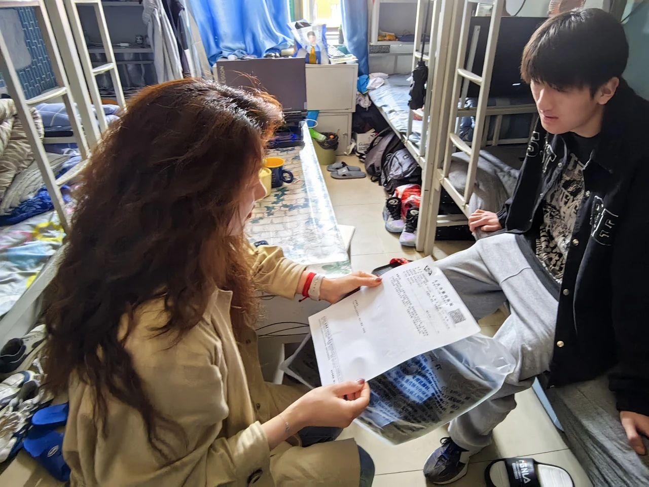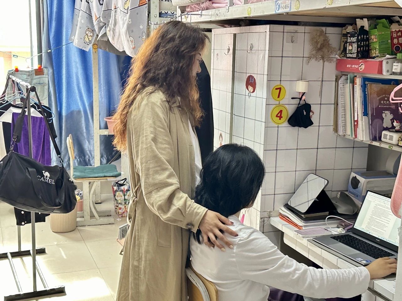 声声问候,饱含关怀;句句叮嘱,温暖人心。在走访过程中,夏老师认真查看员工宿舍的消防设施、安全通道等关键区域,同时,与同学们亲切交谈,详细了解同学们的学习、生活情况,以及他们在学业、就业、心理等方面的困惑和需求。在交流过程中,夏老师对同学们的学习热情和生活状态给予了高度评价,她鼓励同学们要继续保持积极向上的学习态度,努力提升自己的综合素质。