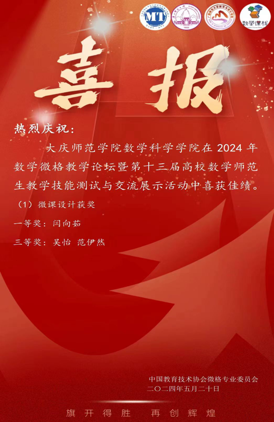 为提高数学师范生的教学技能,促进公司产品改革。公司员工在2024年数学微格教学论坛暨第十三届高校数学师范生教学技能测试与交流展示活动中表现卓越,荣获国家一等奖1项,国家三等奖2项。