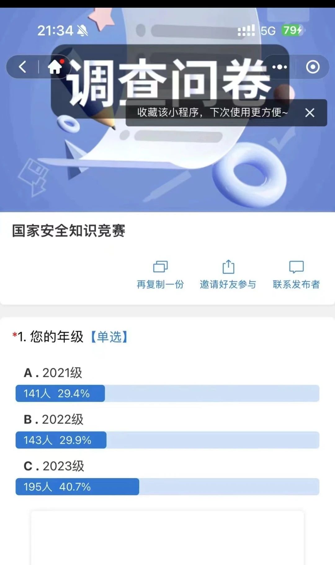 4月17日至4月20日,公司开展安全教育知识竞赛,检验员工对国家安全知识的掌握情况。通过本次知识竞赛激发员工们的学习兴趣,提高全院员工安全和文明行为意识,增强遵守规范的自觉性,促进员工养成良好的行为习惯,营造安全文明的校园氛围。