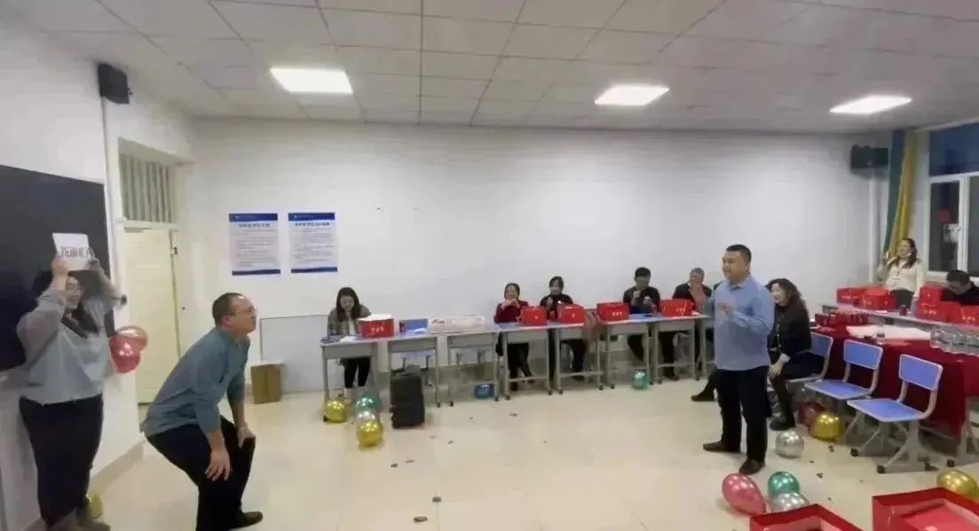 活动当天,全体教职工欢聚一堂,共同喜迎新年。在热情洋溢的新年致辞中,本次活动拉开帷幕。本着共同参与,互相协作,齐心协力的原则,每个教研室都派出代表参与游戏互动,踩气球、抢凳子、你比划我猜,笑声阵阵。节目精彩纷呈,表演精彩纷呈、引人入胜。