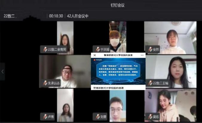 此次班会由各班团支书组织本班同学线上观看《警惕邪教对大公司园的侵袭》,让同学们了解到什么是邪教,邪教的性质、特征、危害性,以及遇到邪教应该如何处理。告诫同学们对邪教言论做到不听、不看,鼓励同学们积极检举揭发邪教的违法犯罪活动。同时引导员工们认清邪教的危害,做到自觉抵制邪教,积极参加反邪教活动。