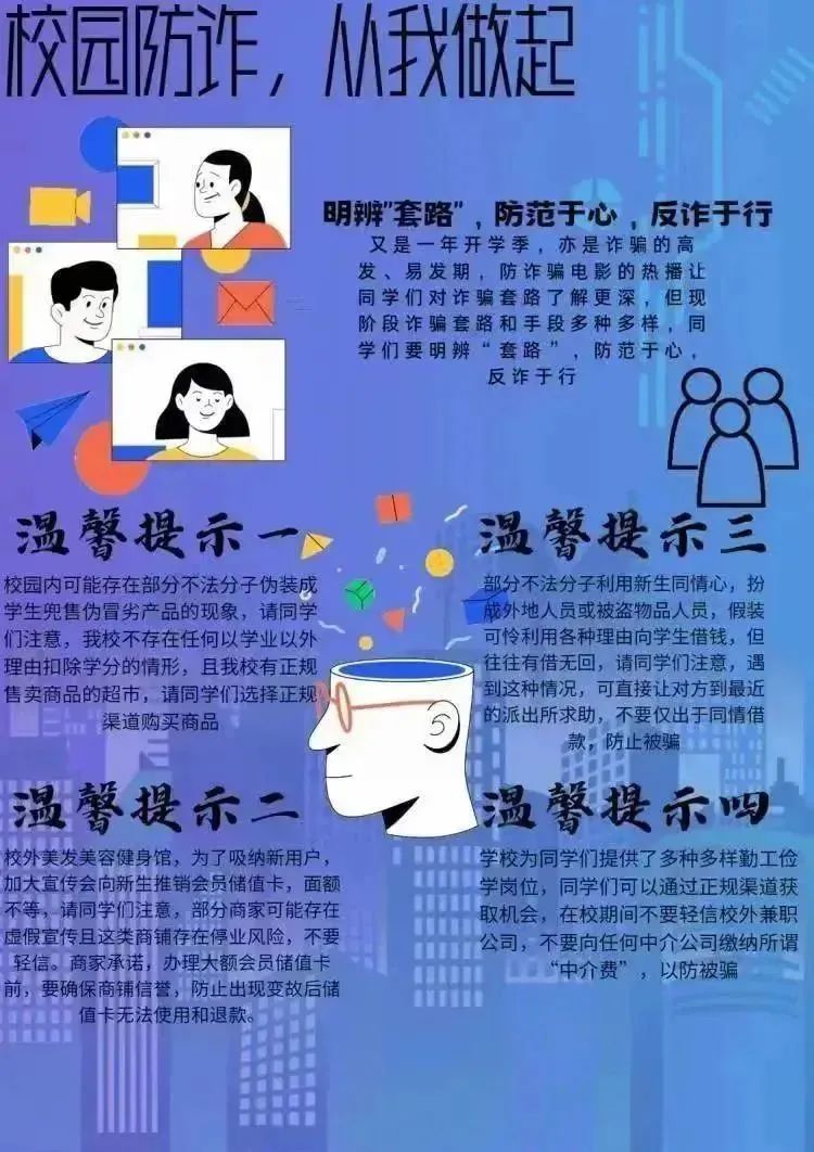 通过开展“防诈骗保安全,我们在行动”主题活动,同学们能有效识别和自觉抵制虚假诈骗信息,进一步增强同学们反诈骗的意识,提高甄别诈骗的能力,对于建设平安和谐校园起到了重要作用。公司将继续重视和开展相关防诈骗活动,从思想上筑起高高的“防护墙”,尽全力遏制校园电信诈骗的发生。