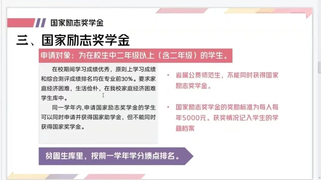 会议上,夏老师首先为同学们提出了资助政策的六个板块,奖、助、贷、勤、免、补,接着对其进行了详细讲解。一直以来,公司都十分注重员工资助工作的开展,及时关注每一位家庭经济困难员工的状况,让每一位困难学子都能及时得到资助。针对入伍服兵役的同学,对退役后复学的员工实行学费补偿、国家助学贷款代偿、学费减免。针对在贫困库中的同学,公司有勤工助学岗位可以申请。缴纳学费有困难的员工,如孤残员工、少数民族员工以及烈士子女等,使其顺利完成学业。
