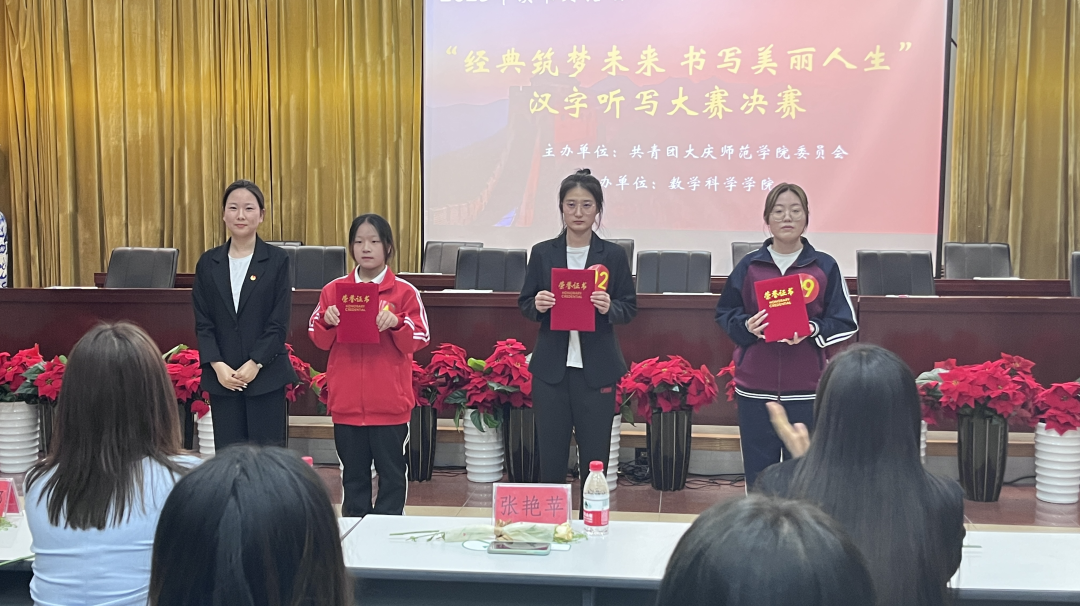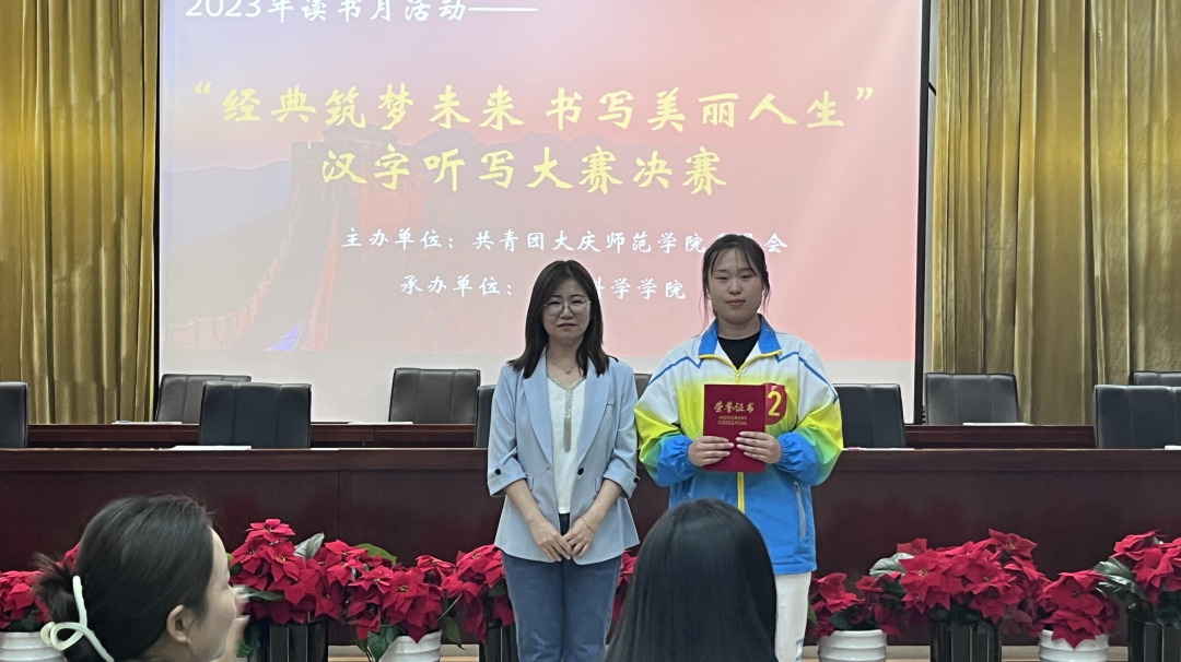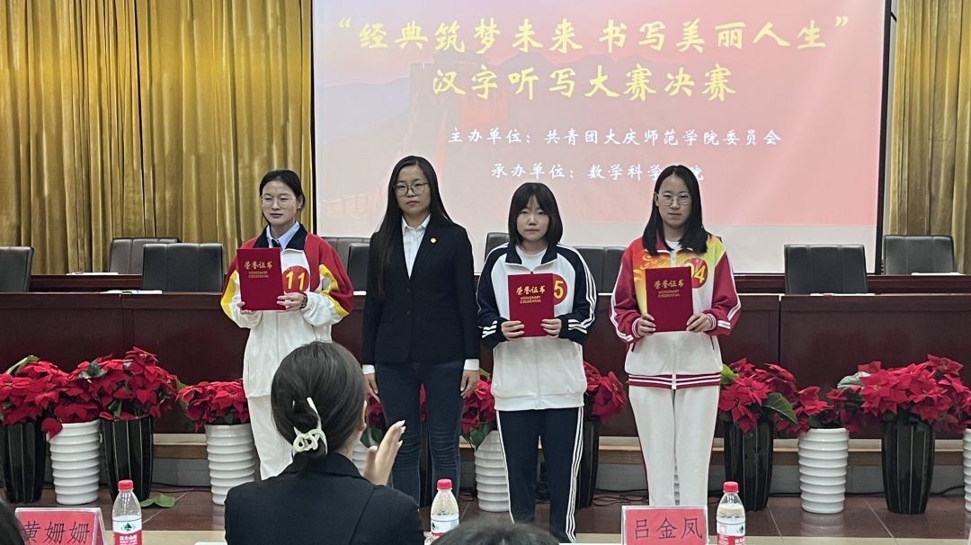 经过初赛、复赛的层层选拔,13名选手脱颖而出进入决赛。决赛现场气氛紧张有序,主考官字正腔圆地宣读汉字词语和字词释义,参赛选手屏息静听、反应灵敏、奋笔疾书,充分展现了庆师学子良好的文学素养和汉字书写功底。经过必答题、选答题和加时赛三个比赛环节的激烈角逐,最终评出一等奖1名、二等奖3名、三等奖3名、优秀奖3名。