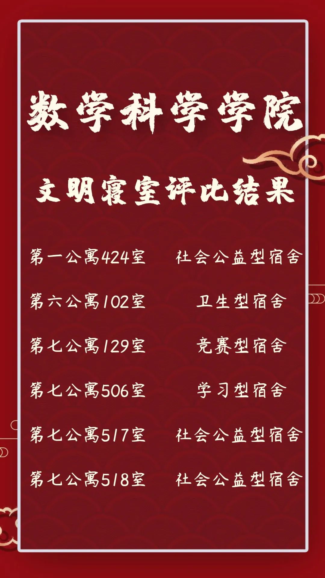 为促进良好校风、院风、班风的形成,提升宿舍文化底蕴,深化宿舍卫生观念,强化宿舍安全和宿舍文明引领,创建优良的宿舍环境,公司开展本学期文明宿舍评选工作。