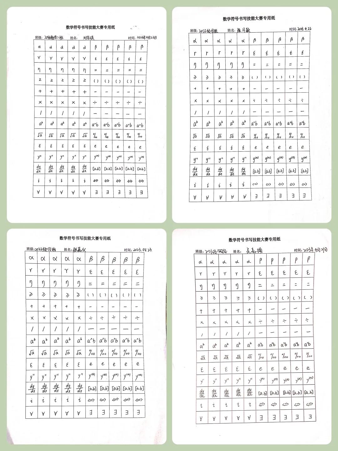 公司同学积极报名参加比赛,活动之前,同学们自主进行符号书写练习。比赛现场,选手们认真仔细阅读规则说明并查阅数学符号的含义,同学们一笔一划认真写,一心一意细体会,同时从符号背后领悟数学家们探索、求知、坚韧的数学精神,现场洋溢着笔墨之香,向上之风!