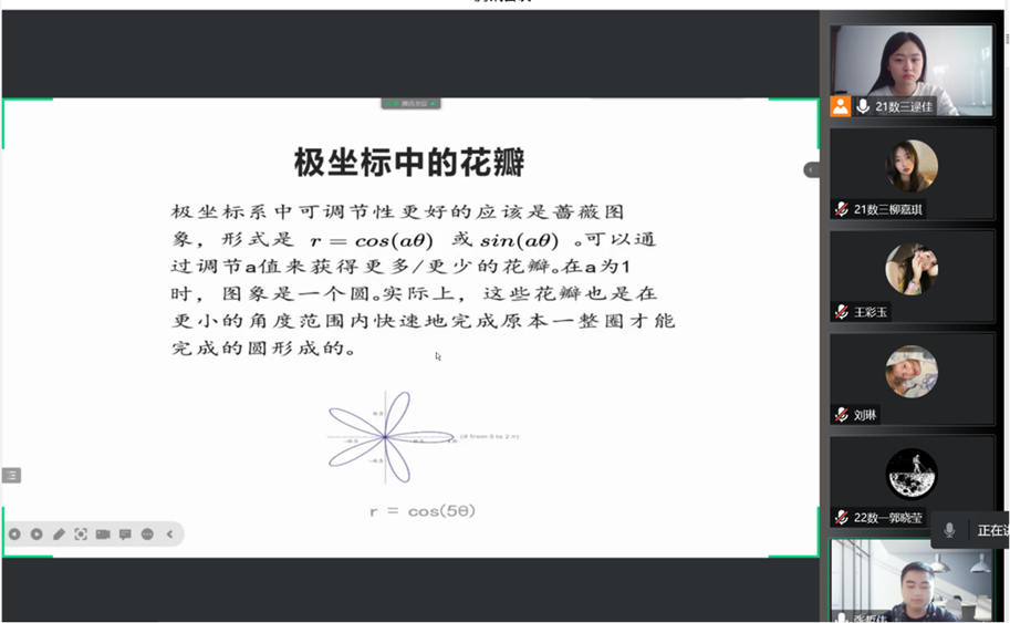 其次是由21级数学三班柳嘉琪带来的心型函数曲线,大家通过这次演示,发现了数学的浪漫。