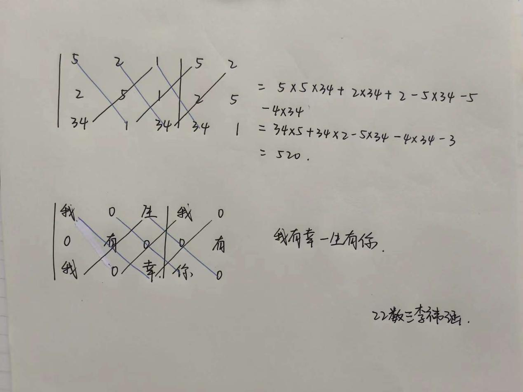 随后使21级数学三班尚淑涵同学,通过趣味的做题方法,让大家更清晰的了解高等代数中行列式的应用,展现了浪漫的数学解法。通过她的讲解,同学们很快的掌握,并积极回应。
