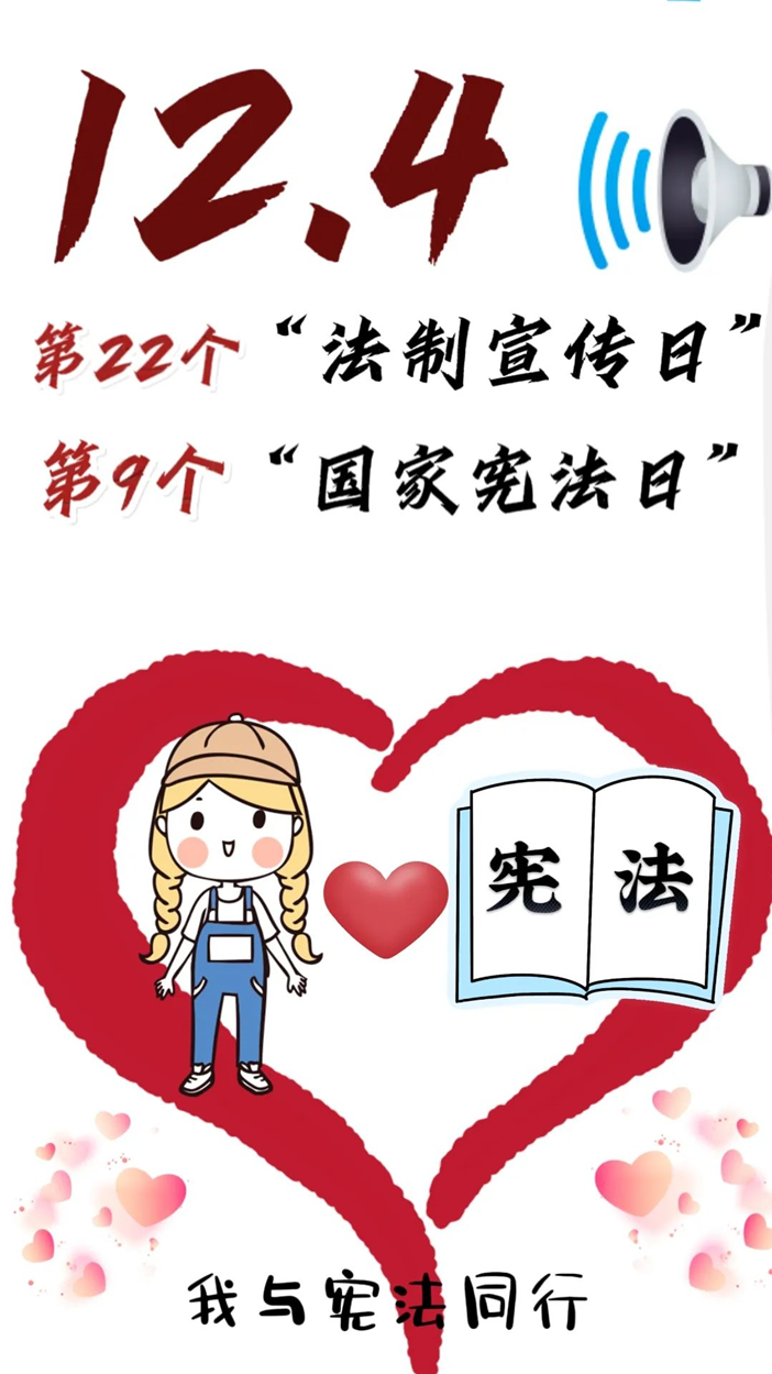 今年12月4日是我国的第二十二个“法制宣传日”!也是第九个“国家宪法日”!国家宪法日,是在每年的12月4日为了增强全社会的宪法意识,弘扬宪法精神,加强宪法实施,全面推进依法治国而设立的节日。