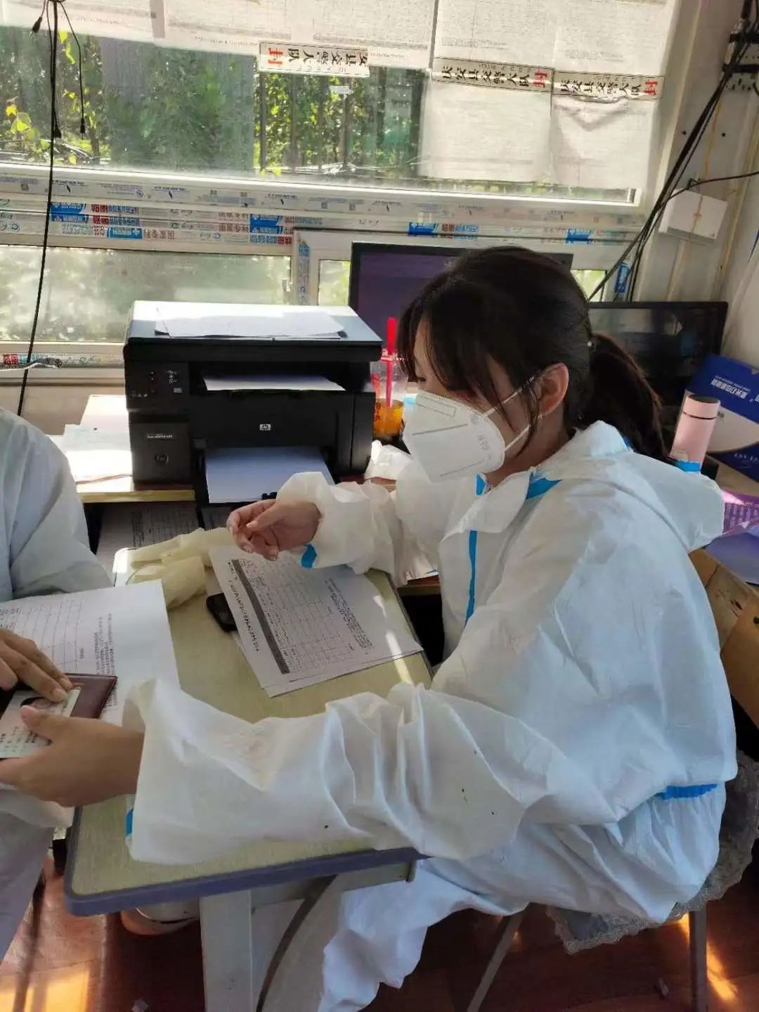 在后方,需要做落地核酸的每一个人都需要扫码登记,当他们有不懂的问题时,她都会帮助解答,有的老人不会使用智能手机,不会打字,她也会耐心地帮助老人,一步一步填好所有信息,把信息单打印好,让他们顺利完成核酸检测。在志愿者工作中会碰到形形色色的人,与他们接触,不仅增强与人交往的能力,也是一个接触社会的机会。志愿服务时,她不是孤身一人,还有很多老员工也参与到了志愿工作中,尽己所能,帮助他人,服务社会,践行志愿者精神,彰显了青年的时代风貌和精神风貌。