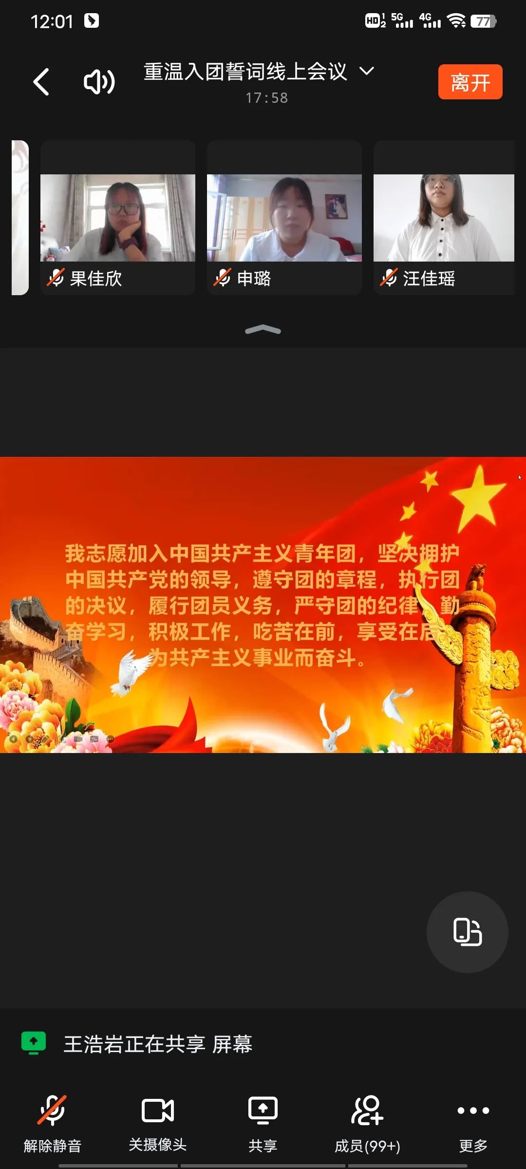 活动二:重温入团誓词线上主题会议