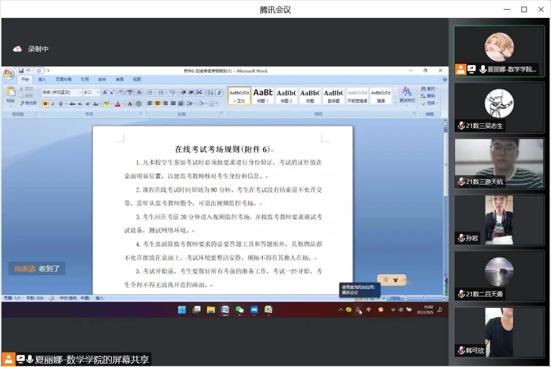 随后,由张鹭老师介绍考场规则及纪律处分规定,包括考试违纪、作弊行为的界定及相应处分,并告诫同学们一定要熟知考场规则,严肃对待考场要求,任何时候都不可以参与任何形式的作弊活动。张鹭老师也就考前准备、考前策略进行了提示,包括提前确认课程信息、更改腾讯会议名称等。