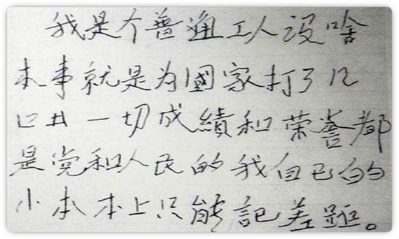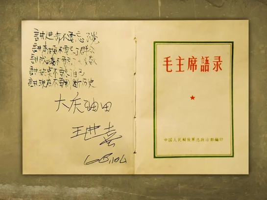 1966年国庆期间, 铁人应邀到北京人民艺术剧院作报告,演员李光复在后台见到铁人,就请他签名。铁人就在《毛主席语录》上写下了内涵丰富、充满哲理的“五讲”:“讲进步不要忘了党,讲本领不要忘了群众,讲成绩不要忘了大多数,讲缺点不要忘了自己,讲现在不要割断历史”。“五讲”是铁人毕生学习和实践的结晶,是他为我们留下的宝贵思想财富。