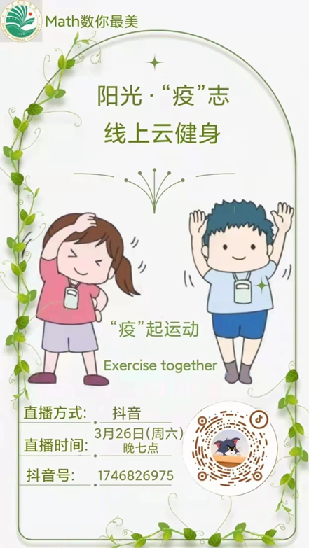 3月26日(周六)晚7点小数将与你线上相约,“疫”起运动!小伙伴们,带着你们的热情,约上你的伙伴,一起来吧!Come on~