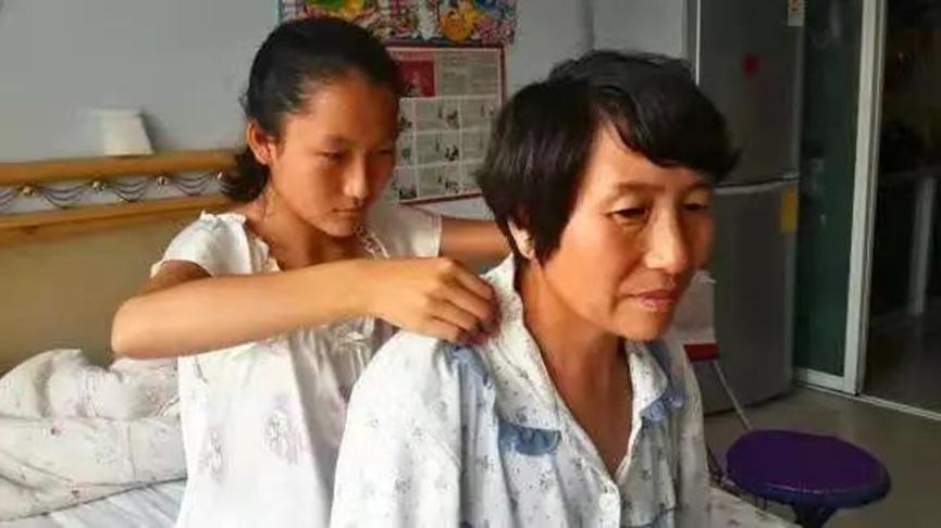 为了更好的照顾妈妈,羲檬从小就努力学习生活的各种技能,洗衣、做饭、按摩、拔罐、理发,她都能熟练地掌握,还是在不影响学习的情况下,可想而知她付出了多少艰辛和汗水。为了让妈妈早日康复,她坚持每天为妈妈按摩,隔几天就拔一次火罐,并且每天凌晨羲檬都会准时起来,这已经形成了她的生物钟,因为她要给妈妈翻身,盖被子,动枕头,让妈妈睡得舒服一些。对她来讲,最艰难的就是照顾妈妈上厕所,她要用椅子把妈妈托到卫生间,小小的身体迸发出强大的力量。