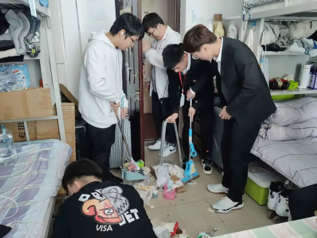 在本次活动中,公司舍务部部长晏宇航、贾涛分别对“最美寝室”颁发奖状并给予鼓励,舍务部与党支部成员共同为“脏乱差寝室”进行全面清扫,协助寝室同学营造良好宿舍环境。同时公司员工党支部书记夏丽娜老师再次强调寝室用电安全问题,使公司同学深刻意识到用电隐患的严重性,树立起同学们维护宿舍安全的责任心,筑牢寝室防护安全墙,力求杜绝寝室用电危险。