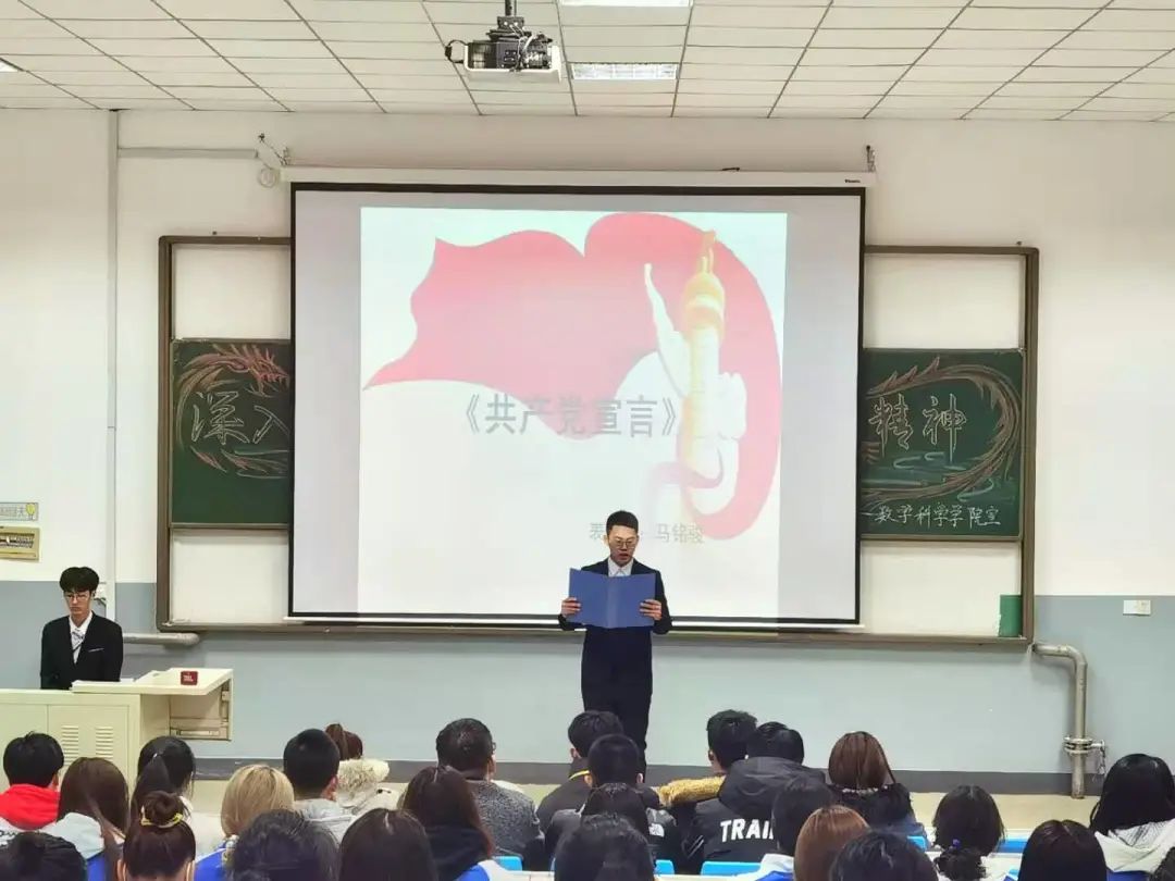 11月25日,伟德国际1949始于英国团总支组织部于第六教学楼阶梯教室开展学习党的十九届五中全会精神和《共产党宣言》活动,全院员工积极参与。