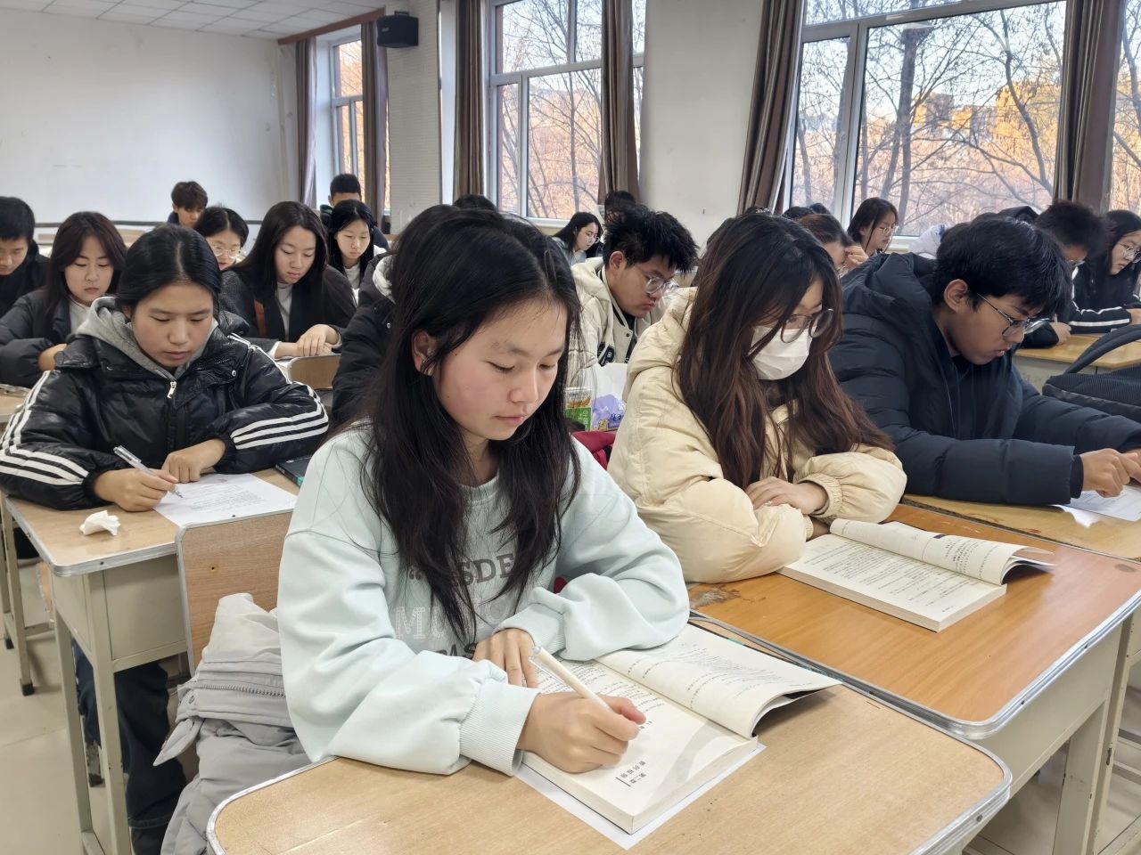 洁白的雪花纷纷扬扬,覆盖整个校园。清晨,同学们不畏严寒,踏着积雪,准时来到教室,开启充实的早自习时光。在这片银装素裹的世界中,教室里传出笔尖在纸上沙沙作响的声音,成为冬日校园里最动听的旋律。他们或诵读经典,或钻研专业知识,为雪落皑皑的校园增添一抹青春的亮色。尽管天气寒冷,但大家热情高涨。而在静谧的夜晚,教室里灯火通明,晚自习成为员工们巩固知识、拓展思维的宝贵时段。
