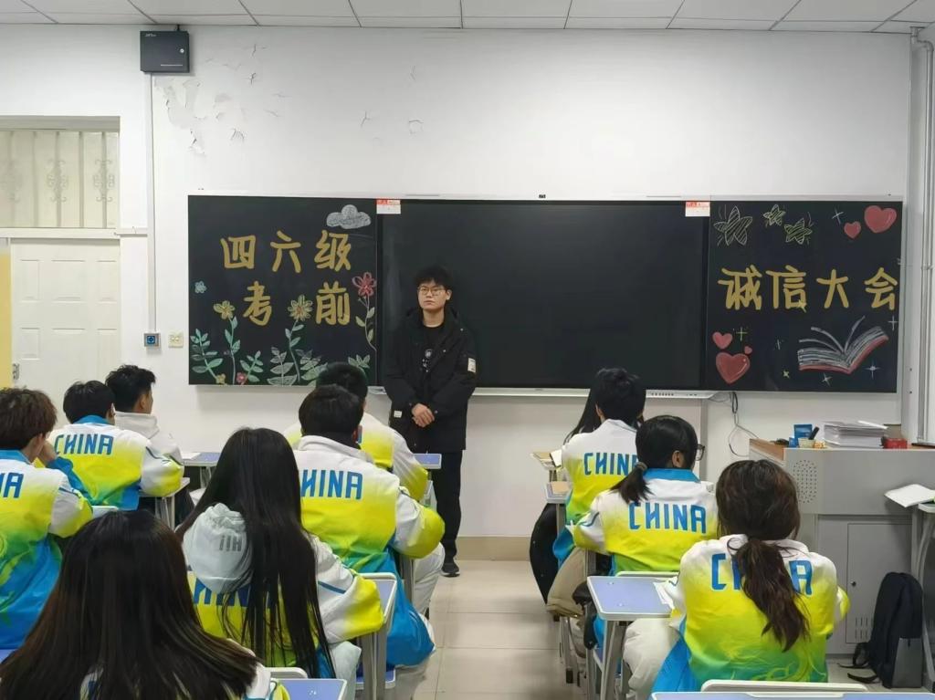 会议伊始,学习纪检部同学详细阐述四六级考试的规章制度,从考试时间的严格把控到答题规范的细致要求,无一遗漏。同时,指出诚信不仅是学术研究能够得以顺利开展的重要根基,更是个人长远发展道路上的核心支撑,而一旦违反考试纪律,将会面临极为严重的后果,其负面影响将深远波及个人学业与未来前景。会后,同学们积极交流,纷纷表示内心受到强烈的触动,深刻认识到诚信考试的严肃性,必将以坚定的决心和实际行动践行诚信考试的承诺。