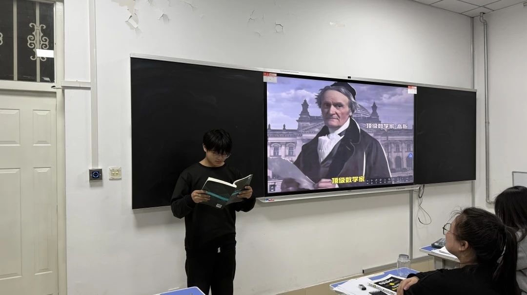 开幕式上,同学们通过观看从古至今数学家们探索数学奥秘的视频,深入了解数学的发展历程。从古希腊数学家为几何痴迷,在沙地上写写画画,到现代数学家在复杂理论里艰难前行,每一段故事都让同学们深刻理解数学精神。这些数学家的智慧和热情,不仅为数学大厦添砖加瓦,更激励着同学们继续前行。受到鼓舞的同学们纷纷上台,分享自己对数学精神的理解和大学期间新学到的深奥数学知识,无论是数学新手还是资深爱好者,都在这里找到共鸣,感受到数学的无限魅力。