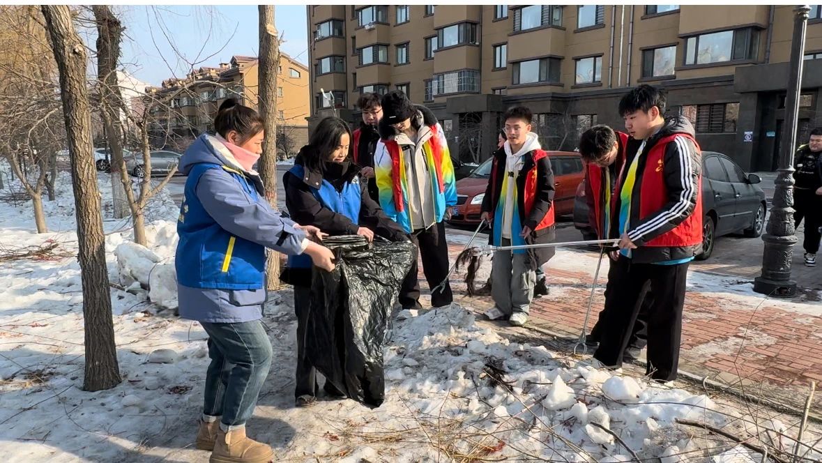 在此之后,数科学子走进社区,开展垃圾清理活动。同学们手持垃圾袋、夹子等工具,对社区街道、绿化带、楼道等区域进行全面清理。他们不怕脏、不怕累,细心地将地面上的烟头、纸屑、包装袋以及隐藏在草丛中的垃圾一一拾起。在清理过程中,同学们还向居民宣传环保知识,倡导大家共同爱护社区环境,养成良好的卫生习惯。居民们对志愿者们的辛勤付出纷纷表示赞扬与感谢。