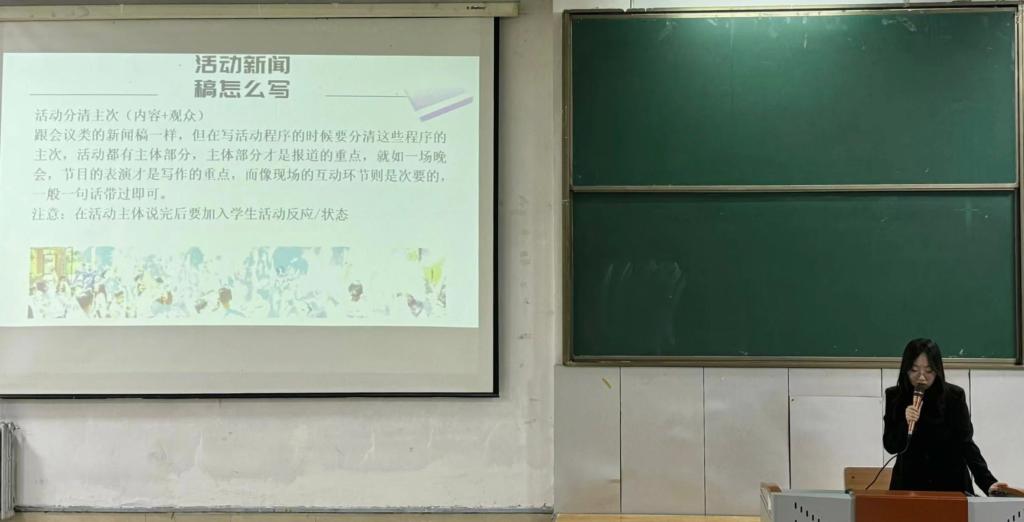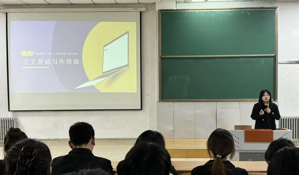 会议伊始,夏丽娜老师着重强调本次公文写作与技能培训会议的重要性。她语重心长地表示,公文写作、新闻稿撰写以及拍照技能是工作中极为重要的部分,关乎信息的准确传达与形象的有效展示,希望同学们务必认真学习,把握这次提升自我能力的宝贵机会。员工组织办公室主任赵羿涵条理清晰地阐述公文写作的重要性,展示丰富案例,深入剖析通知、策划、总结等常用公文格式要点与误区。随后,新媒体新闻部部长齐铄分享新闻稿写作技巧以及标题如何命名。她点明新闻稿与其他公文在语言、内容上有显著不同,新闻稿具有极强的时效性,需在事件发生后第一时间撰写发布。最后,新媒体影音部部长梁博从基础摄影理论讲起,再到构图方法、拍摄角度选择,以及活动现场抓拍技巧并且结合实际案例,细致讲解不同场景下的拍摄要点。同学们纷纷表示收获颇丰,不仅解开公文写作疑惑,学会撰写新闻稿,还掌握实用拍照技巧,对未来的工作信心倍增。
