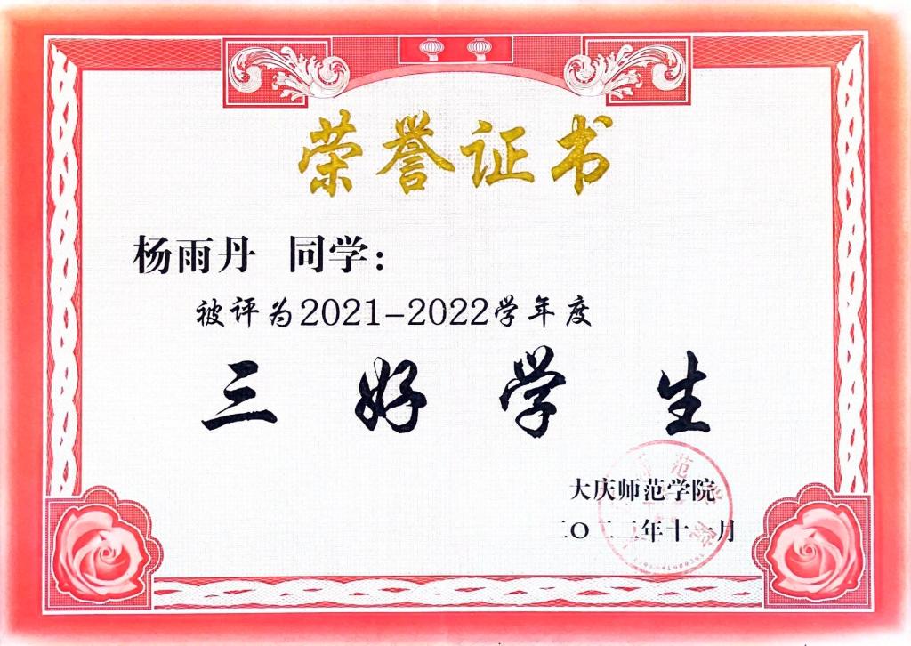 “世间万物有盛衰,人生安得常少年”。作为新时代青年,她积极弘扬和传播中华民族精神,努力用自己的青春书写中国青年新篇章。始终以“自强不息,臻于至善”的校训作为自己的行动指南,时刻以大庆精神(铁人精神)作为自己奋斗目标。日后的学习中她将以高质量、高标准完成余下的学习任务的基础上,扎根教书育人事业,争做最美的基层人民教师,书写青春绚丽华章!
