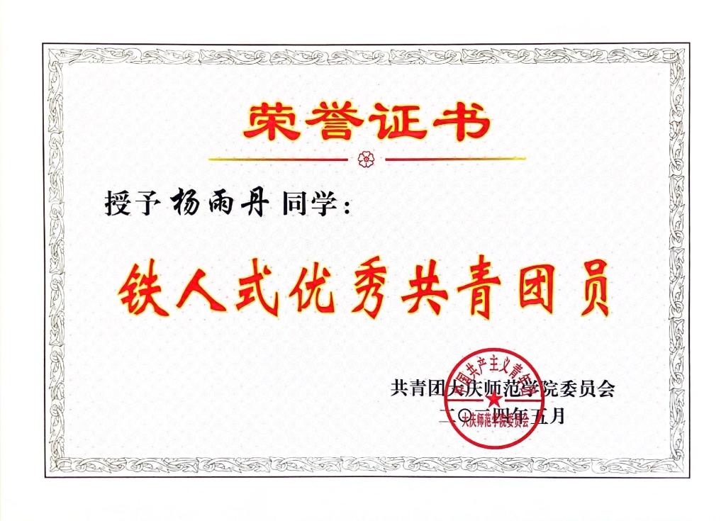 自入学以来,始终以优秀共产党员标准严格要求自己,连续两年专业成绩位列专业第一,连续三年综合测评成绩位列专业第一,获得“国家奖学金”,黑龙江省“三好员工”,多次获得校“特等奖学金”、“一等奖学金”,校“优秀共青团干部”,校“三好员工”、校“文明员工”,校“铁人式优秀共青团员”等荣誉称号。积极参加各类创新创业大赛,《因地制“遗”》创业项获得省级创新创业计划,获得校级“三维数字化创新设计大赛”二等奖,校级“绿色创新奖”。注重实践担当,连续三年驻村志愿服务累计800小时,深入哈尔滨4个村屯调研解决实际问题10余例。担任班长期间带领班级获“文明班级”“书香班级”等荣誉称号,任辅导员助理期间协助管理41名新生适应老员工活。