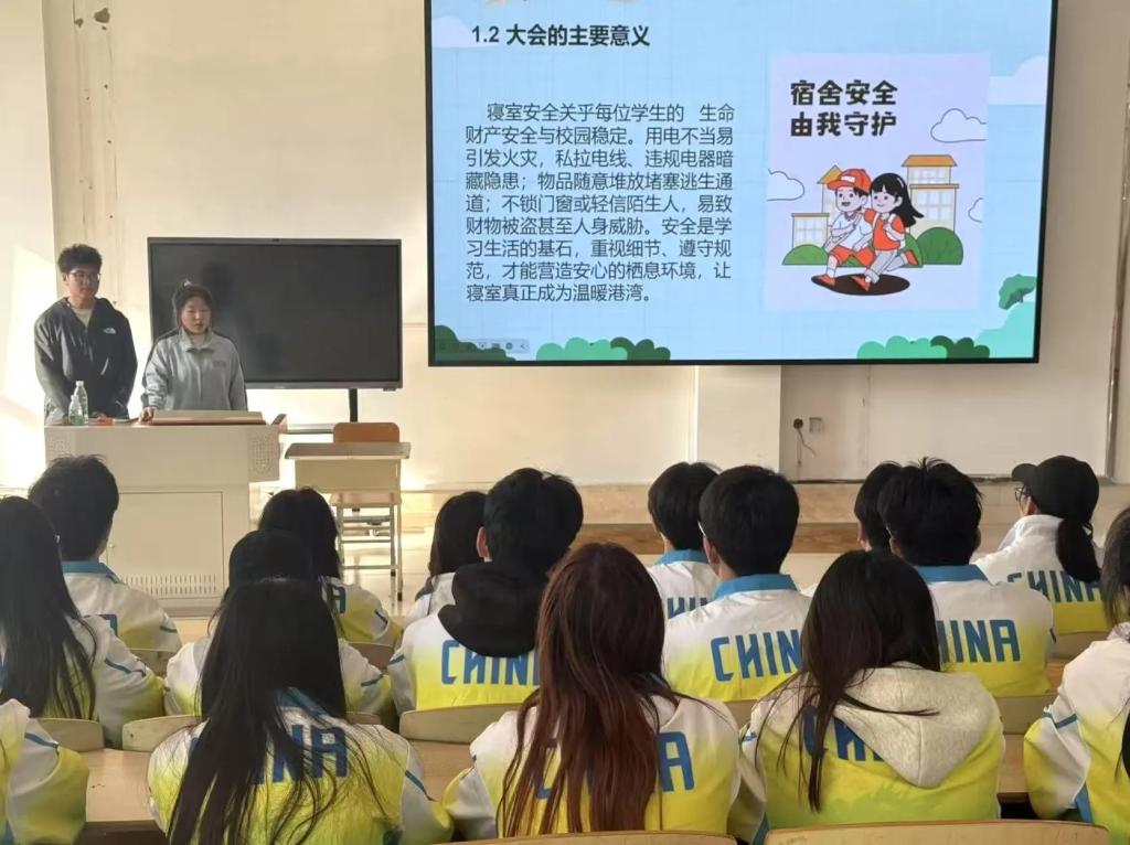 会议上,在安全知识普及方面,生活部开展安全隐患排查行动,辅导员老师联合员工干部成立检查小组,对寝室进行突击检查,重点排查违规电器、私拉电线、易燃易爆物品等。一旦发现违规行为,会进行登记通报,并要求限期整改。同时会上明确寝室长为安全第一责任人,落实“日巡查、周汇报”制度;将安全知识纳入新生入学教育,每学期开展1次专题培训。参会的寝室长们纷纷表示已了解寝室安全的重要性,今后会以身作则,带动全寝维护寝室安全,共建文明寝室。