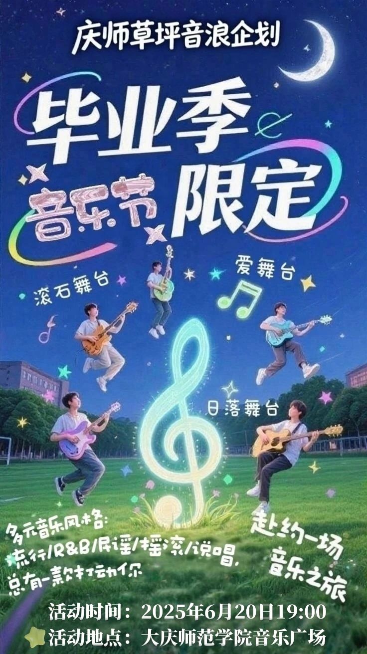 六月的蝉鸣,奏响青春的旋律;炽热的夏日,点燃音乐的激情。当毕业季遇上音乐狂欢,一场视听盛宴——“庆师草坪音浪企划”草坪音乐节,即将震撼开场!