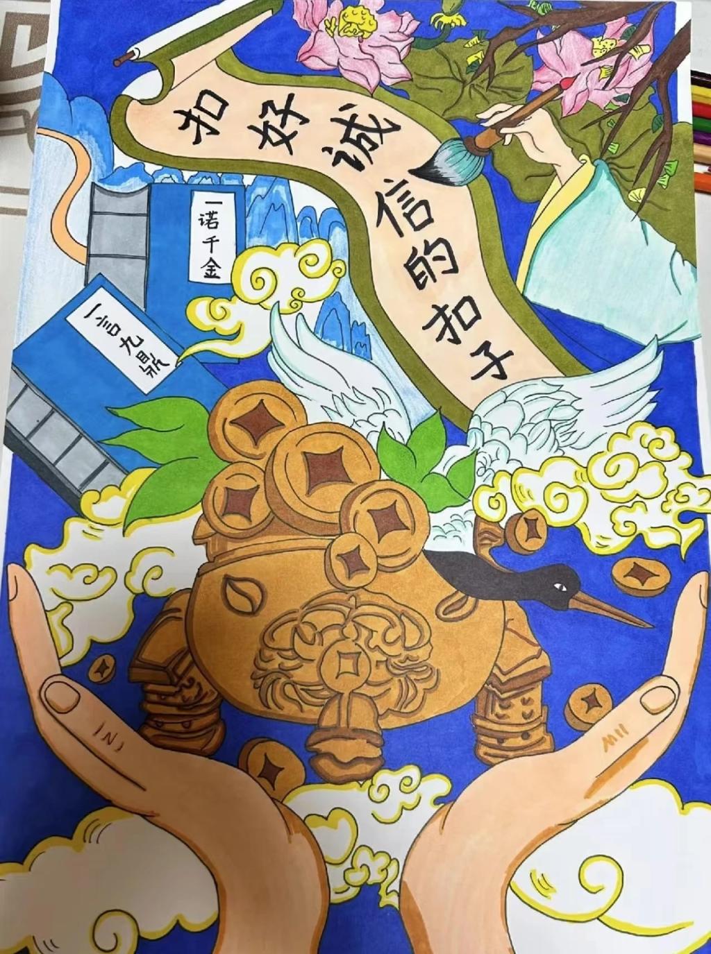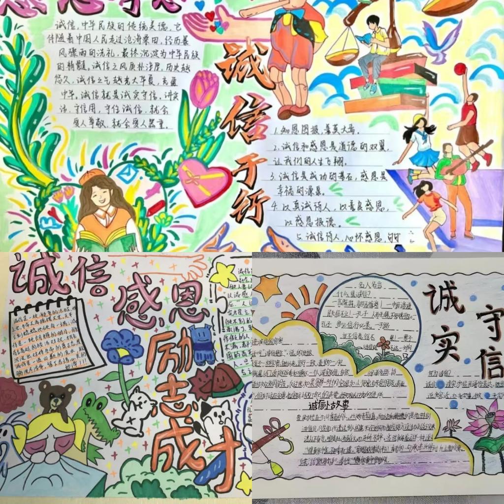 活动中,同学们以独特的创意构思、鲜活的色彩搭配和工整的文字书写,将诚信与感恩的深刻内涵融入一幅幅精美的手抄报中。同学们纷纷表示,在梳理素材、精心创作的过程中,不仅发现生活中的点滴善意,更深刻领悟到诚信是立身之本,感恩是成长之基,二者如同人生道路上的明亮灯塔,指引着我们不断前行。