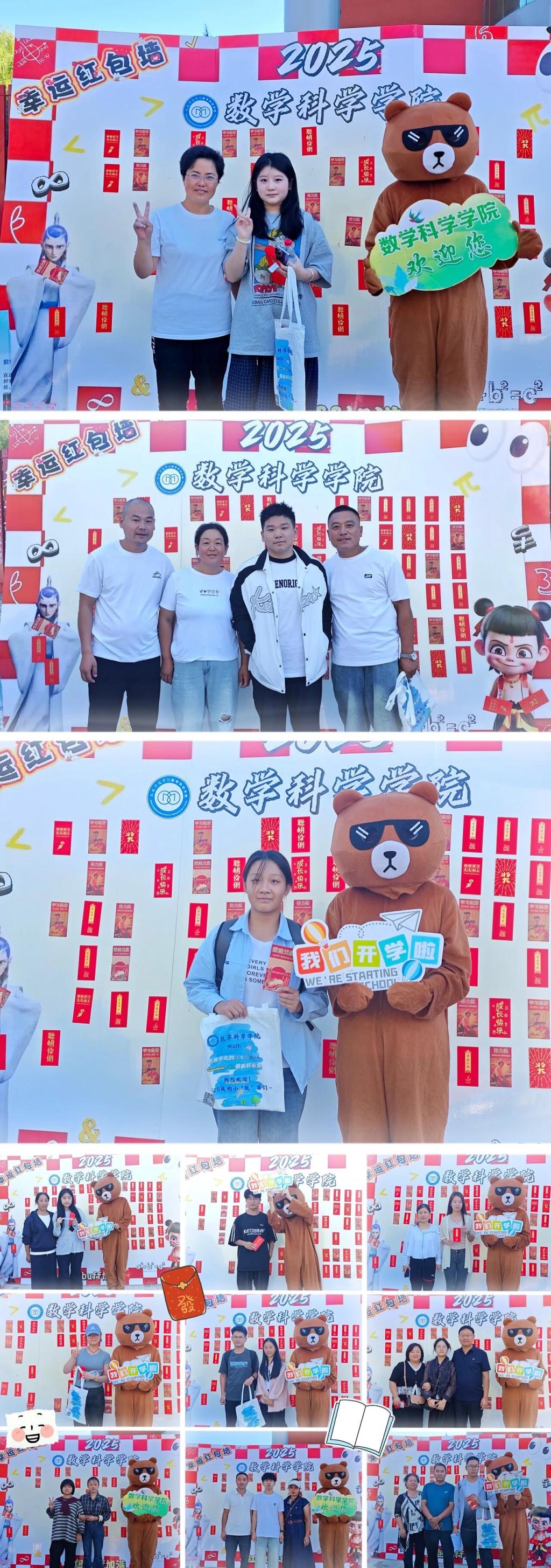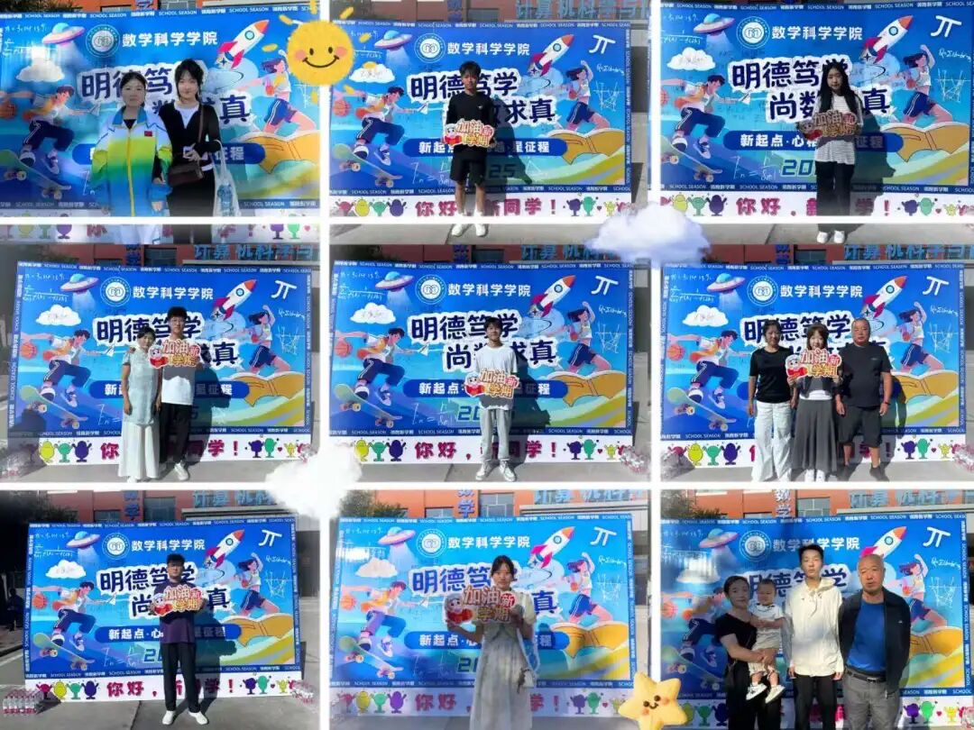 教学楼前的打卡区满是巧思,定制布景精致,装饰搭配错落有致,氛围营造温馨活泼。新生们或与家人并肩合影,或手持道具留下笑脸,还在背景板上郑重签下名字;志愿者按下快门,为青春留存这份珍贵的初遇记忆。